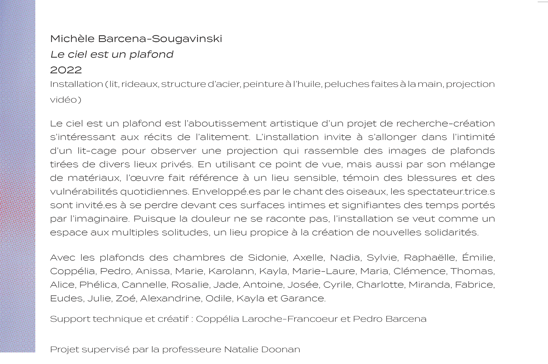 Projet supervisé par la professeure Natalie Doonan